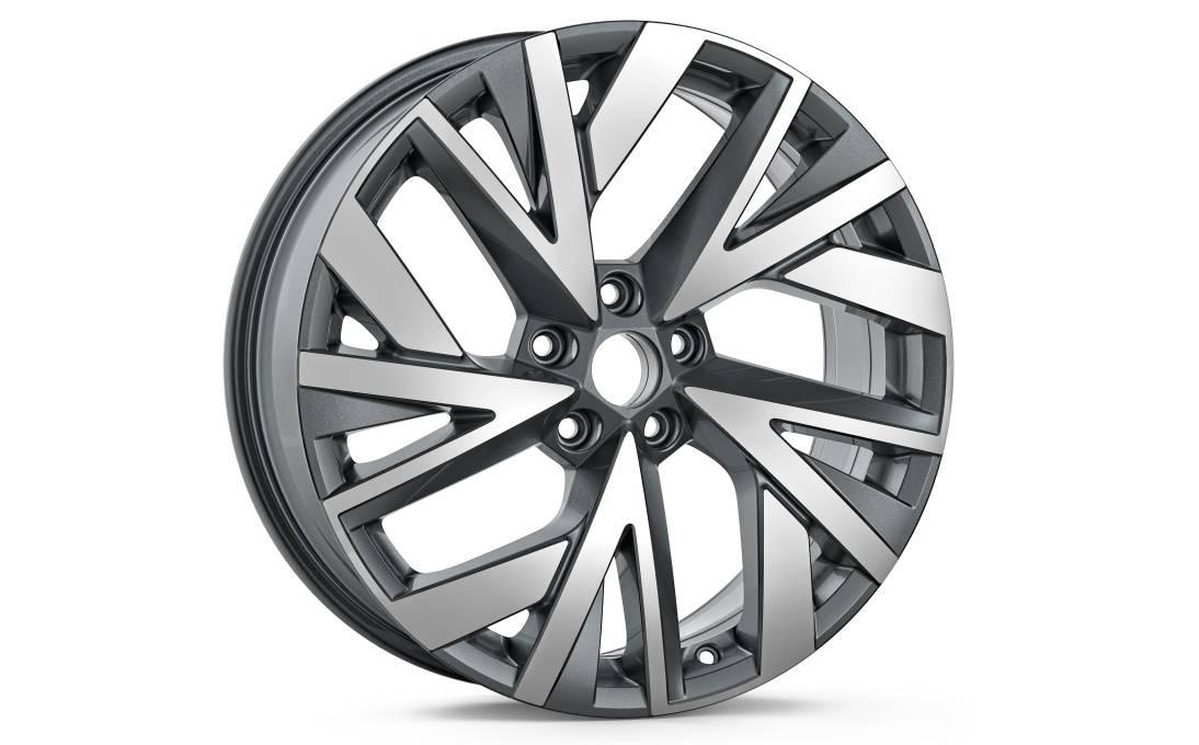 1 570,00 złObręcz koła ze stopów lekkich 7,5Jx19 ET40 do opony 235/50 R19 antracyt metallic, szczotkowana. Wykonana ze stopów lekkich o podwyższonej trwałości - lepsza odporność na uszkodzenia, zabrudzenia, warunki atmosferyczne; z powłoką antykorozyjną. Oryginalne felgi Skoda podlegają fabrycznym testom wytrzymałości - każdy wzór felgi, przed wprowadzeniem do sprzedaży, sprawdzany jest na dystansie 100 tys. km. Test sztywności i stabilności – podczas tego testu odchylenia i ubytki felgi nie mogą być większe niż 6 mm. Samochód dociążony do 90% ładowności, przy prędkości 60 km/h najeżdża na przeszkodę.