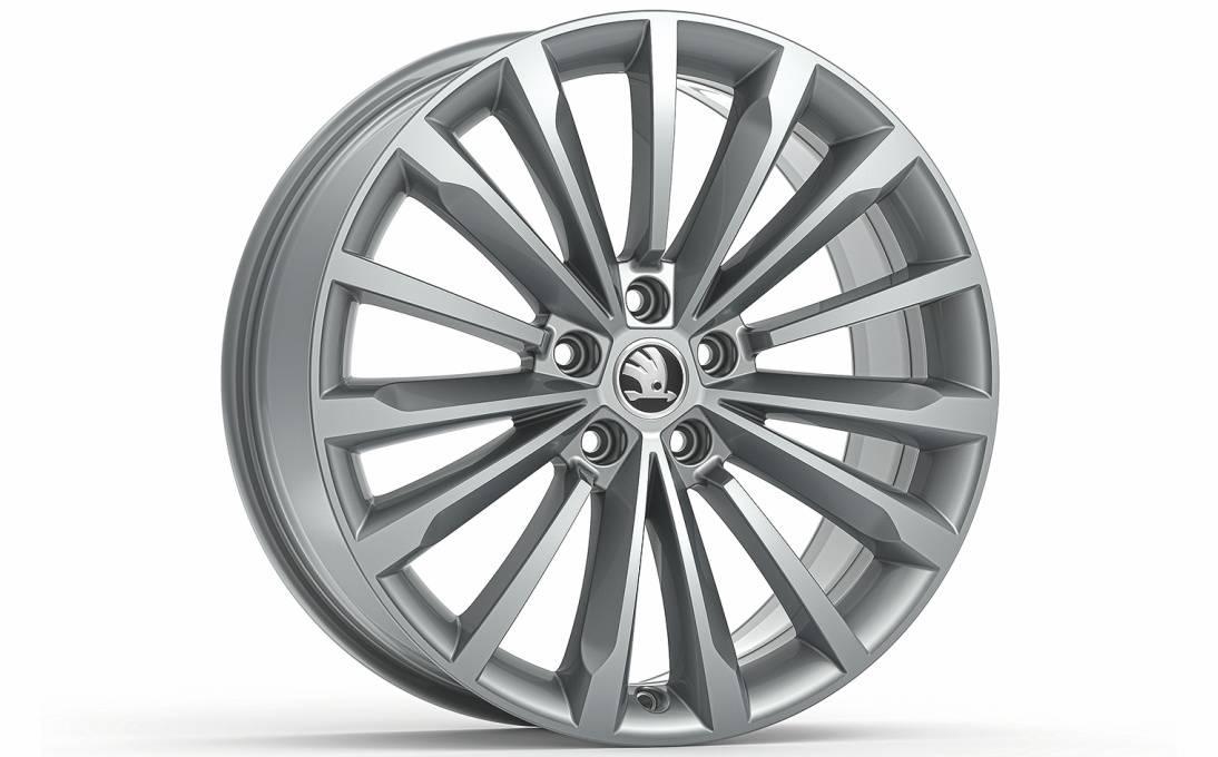 2 080,00 złObręcz koła ze stopów lekkich 8Jx19" ET 44 do opony 235/40 R19. Z kołpaczkiem z logo Skoda w komplecie. Wykonana ze stopów lekkich o podwyższonej trwałości - lepsza odporność na uszkodzenia, zabrudzenia, warunki atmosferyczne; z powłoką antykorozyjną. Oryginalne felgi Skoda podlegają fabrycznym testom wytrzymałości - każdy wzór felgi, przed wprowadzeniem do sprzedaży, sprawdzany jest na dystansie 100 tys. km. Test sztywności i stabilności – podczas tego testu odchylenia i ubytki felgi nie mogą być większe niż 6 mm. Samochód dociążony do 90% ładowności, przy prędkości 60 km/h najeżdża na przeszkodę.