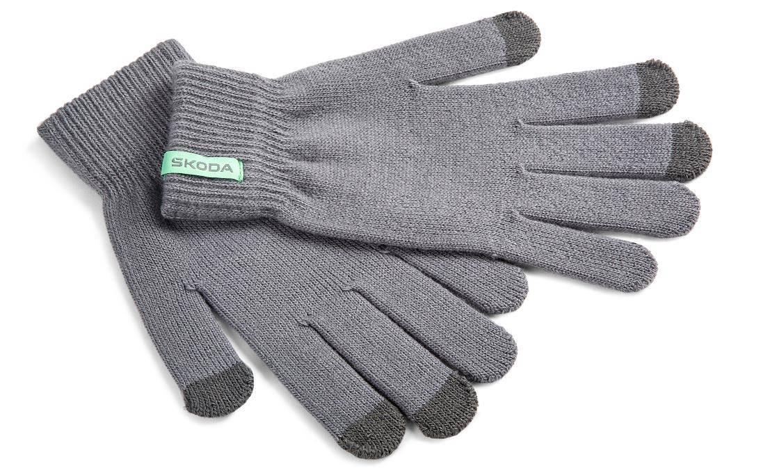 29,00 złRękawiczki męskie dzianinowe w kolorze szarym. Dotykowe palce do sterowania telefonem komórkowym wyróżniają się ciemniejszym szarym kolorem. Tkana etykieta ŠKODA na krawędzi rękawicy.