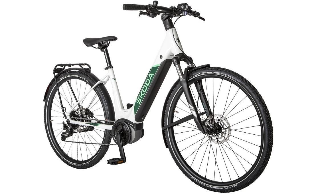 15 500,00 złŠkoda eCity to w pełni wyposażony rower turystyczny z mocnym silnikiem Bosch Active Line Plus i baterią o pojemności 500 Wh, zapewniającą zasięg do 140 km na jednym ładowaniu. Oprócz lekkiej wagi i kompaktowych wymiarów, silnik Bosch charakteryzuje się płynniejszym i mniej agresywnym dostarczaniem mocy, co docenisz podczas spokojnych wycieczek lub codziennych dojazdów. Wyposażenie roweru jest również dostosowane do tego celu, a na Škoda eCity znajdziesz widelec amortyzowany RST Volant, przerzutki Shimano Acera, lekkie błotniki, bagażnik do przewożenia sakw, podpórkę, lekką blokadę oraz osłonę łańcucha, która zapobiega brudzeniu nóg.